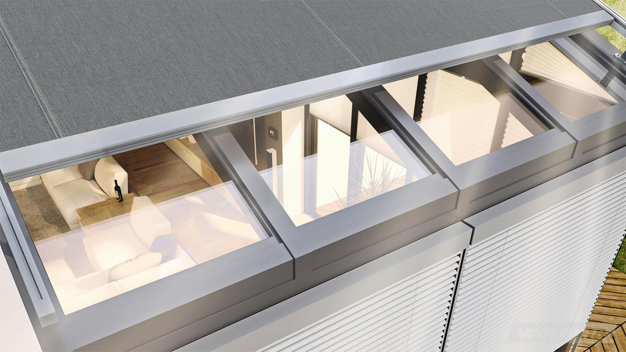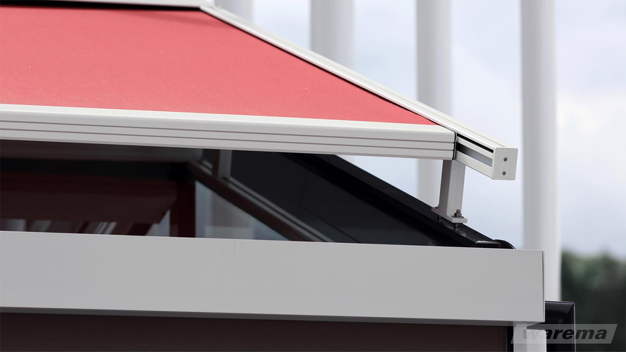Außenliegende Wintergarten-Markisen werden auf dem Kaltdach des Wintergartens montiert. Sie fangen den größten Teil der Strahlen schon vor dem Glas ab, so dass die Wärme gar nicht erst ins Innere gelangt. Da die Anlagen der Witterung ausgesetzt sind, sind die außenliegenden Climara Wintergarten-Markisen sehr widerstandsfähig und stabil konzipiert.