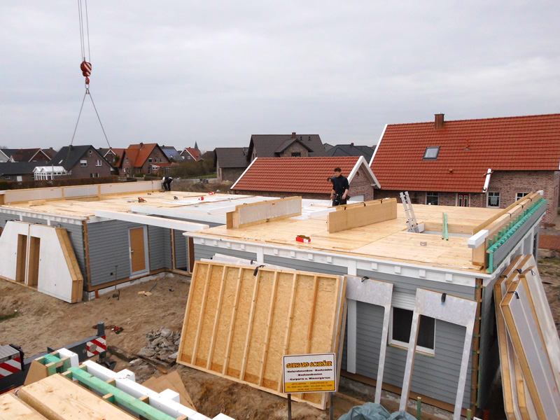 Im Bereich Holzbau sind wir Ihr zuverlässiger Ansprechpartner für den Holzrahmenbau, Dacharbeiten, Fertiggauben und Carports.